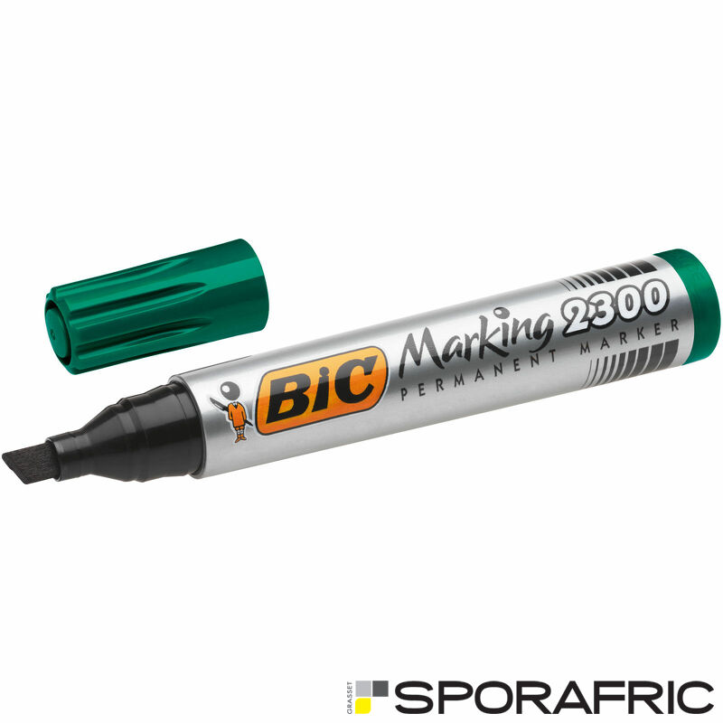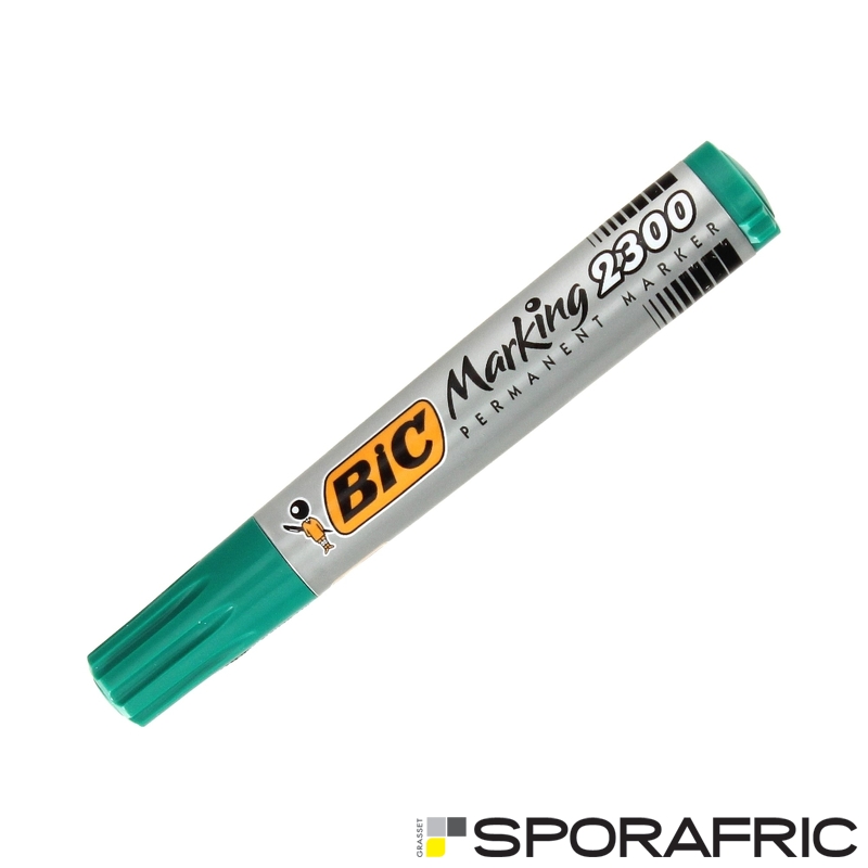 <div class="section__description"><span class="description__text">Le marqueur permanent BIC Marking 2300 ECOlutions est un feutre indélébile éco-conçu fabriqué avec 51% de matériaux recyclés (à l'exception du système d'encre). Il peut écrire jusqu'à 1 km et ne sèche pas même s'il reste décapuchonné pendant 1 mois. Disponible en 4 couleurs indémodables (noir, bleu, rouge ou vert), il est idéal pour écrire sur la plupart des surfaces type cartons, plastiques, métaux, CD. Sa pointe biseautée très résistante permet de faire varier l'épaisseur des tracés entre 3, 7 et 5, 5 mm. Fabriqué en France.</span></div>