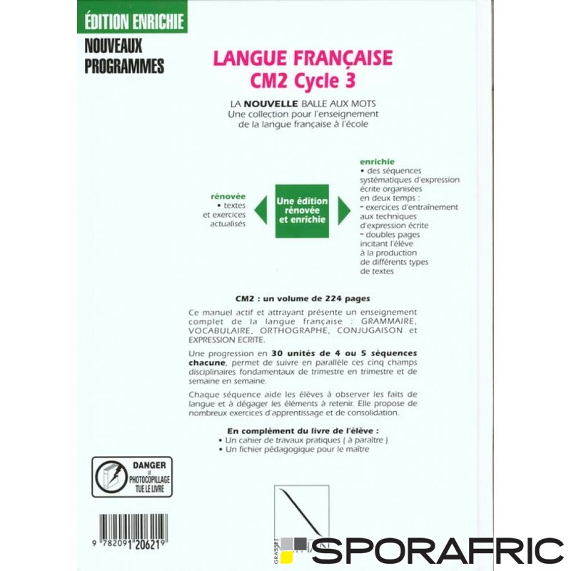 Un volume de 224 pages. Ce manuel actif et attrayant présente un enseignement complet de la langue française : GRAMMAIRE, VOCABULAIRE, ORTHOGRAPHE, CONJUGAISON et EXPRESSION ECRITE. Une progression en 30 unités de 4 ou 5 séquences chacune, permet de suivre en parallèle ces cinq champs disciplinaires fondamentaux de trimestre en trimestre et de semaine en semaine. Chaque séquence aide les élèves à observer les faits de langue et à dégager les éléments à retenir. Elle propose de nombreux exercices d'apprentissage et de consolidation.