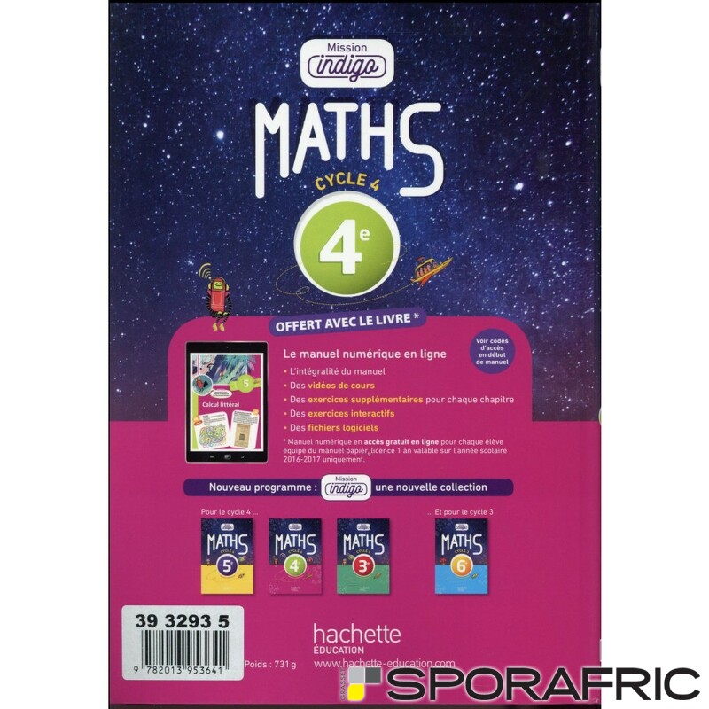 Une collection riche et complète pour mettre en oeuvre aisément le nouveau programme dans toutes ses dimensions * Un choix pédagogique assumé d'une progression sur les 3 niveaux, pour faciliter la mise en oeuvre et garantir une grande quantité d'exercices.<br />* Une progression spiralée sur l'ensemble du cycle 4 : les notions étudiées à un niveau donné sont réinvesties et approfondies dans les niveaux suivants.<br />* Une grande progressivité des exercices, avec du calcul mental et des exercices techniques sur chaque capacité.<br />* Des problèmes motivants, sur des situations de la vie courante et en lien avec d'autres disciplines, de nombreuses prises d'initiatives, pour former tous les élèves à la résolution de problèmes.<br />* Des outils pour la différenciation et l'AP, des cartes mentales pour mémoriser le cours.<br />* Un accent mis sur l'algorithmique et les outils numériques, avec des TP ou des projets qui peuvent être menés avec le professeur de technologie ou en EPI.<br />* En complément du livre, accès gratuit en ligne au manuel numérique élève, avec des capsules vidéo de cours, des exercices supplémentaires, des exercices interactifs et des fichiers logiciels.