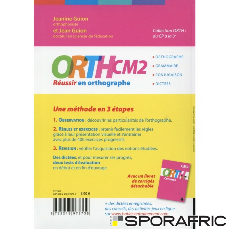 Orthographe - Grammaire - Conjugaison - Dictées. Une méthode en 3 étapes : Observation : découvrir les particularités de l'orthographe. Règles et exercices : retenir facilement les règles grâce à leur présentation visuelle et s'entraîner avec plus de 400 exercices progressifs. Révision : vérifier l'acquisition des notions étudiées.