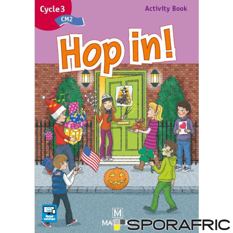 Méthode d'anglais conforme au Cadre Européen Commun de Référence pour les Langues.<br /><br />Hop in ! CM2 est une méthode d'anglais conforme au Cadre Européen Commun de Référence pour les Langues, dont la démarche est axée sur le rebrassage et l'apprentissage en spirale, autour de 18 thématiques élargies d'année en année.<br /><br />Elle propose des activités ludiques et testées sur le terrain faisant appel :<br />- au geste (mimes et activités incitant à lier la parole au geste).<br />- à la mémoire visuelle (posters, flashcards, fiches de compréhension visuelle).<br />- au rythme et à la musique (20 chansons avec version karaoké).<br /><br />Ces activités permettent de travailler le langage orale et les liens entre la graphie, la phonie et le sens.<br /><br />L'Activity Book :<br />- en lien étroit avec le CD audio, permet à chaque élève de se réapproprier de façon interactive ce qui a été vu en classe - permet à l'élève de suivre sa progression (pages Check time);<br />- donne la synthèse de ce qu'il faut retenir.