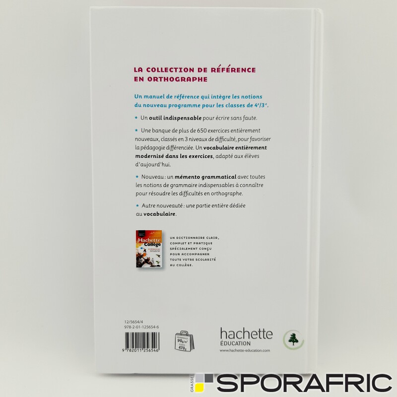 La collection de référence en orthographe Un manuel de référence qui intègre les notions du nouveau programme pour les classes de 4e et 3e.Un outil utilisable quelles que soient les pratiques pédagogiques de l'enseignant.Une banque de plus de 650 exercices entièrement nouveaux, classés en 3 niveaux de difficulté, pour favoriser la pédagogie différenciée. Un vocabulaire entièrement modernisé dans les exercices pour être adapté aux élèves d'aujourd'hui.Une partie entière est dédiée au vocabulaire.Nouveau: un mémento grammatical avec toutes les notions de grammaire indispensables à connaître pour résoudre les difficultés en orthographe.