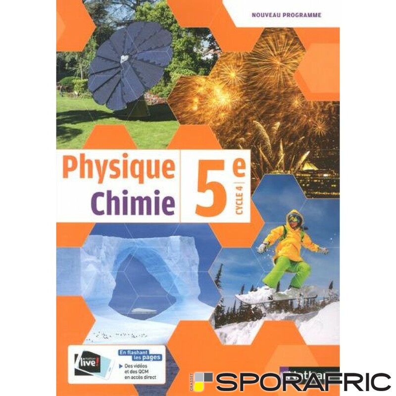Un manuel de physique-chimie 5e avec une progression spiralaire et plus de liberté pédagogique (parution 2017).<br />- Une progression spiralaire construite à partir des attendus de fin de cycle pour aborder l'ensemble des compétences du socle.<br />- Une structure simple, une maquette aérée avec des documents motivants, des questionnements clairs et progressifs.<br />- Une démarche scientifique pratiquée à partir d'activités variées : expérimentation, démarches d'investigations, activités documentaires, tâches complexes.<br />- De nombreux exercices et une préparation inédite à la nouvelle épreuve du BREVET.<br />- Des exercices guidés pour l'accompagnement personnalisé et de la méthode pour travailler les compétences.<br /><br />Nathan live ! : des vidéos et QCM interactifs en accès direct en flashant les pages des manuels.