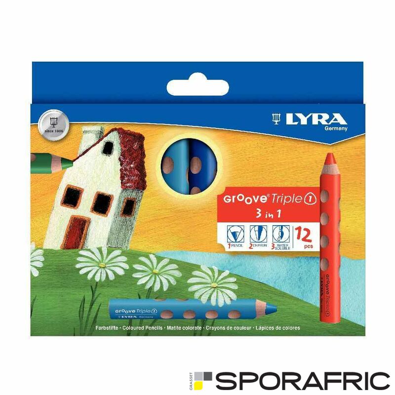 Etui de 12 crayons de couleur gros module. Son corps triangulaire lui évite de rouler.<br /><br />Crayons 3 en 1: crayon aquarellable, crayon de couleur et crayon cire.<br /><br />Qualité élevée.<br /><br />L'enfant obtient de belles couleurs sans appuyer.<br /><br />Mine extra grosse de 10 mm.<br /><br />Prise en main optimale.<br /><br />Pouvoir couvrant exceptionnel.<br /><br />Dès 2 ans.<br /><br />Diamètre de mine: 10 mm.<br />Longueur: 12 cm (adapté aux mains des plus jeunes).