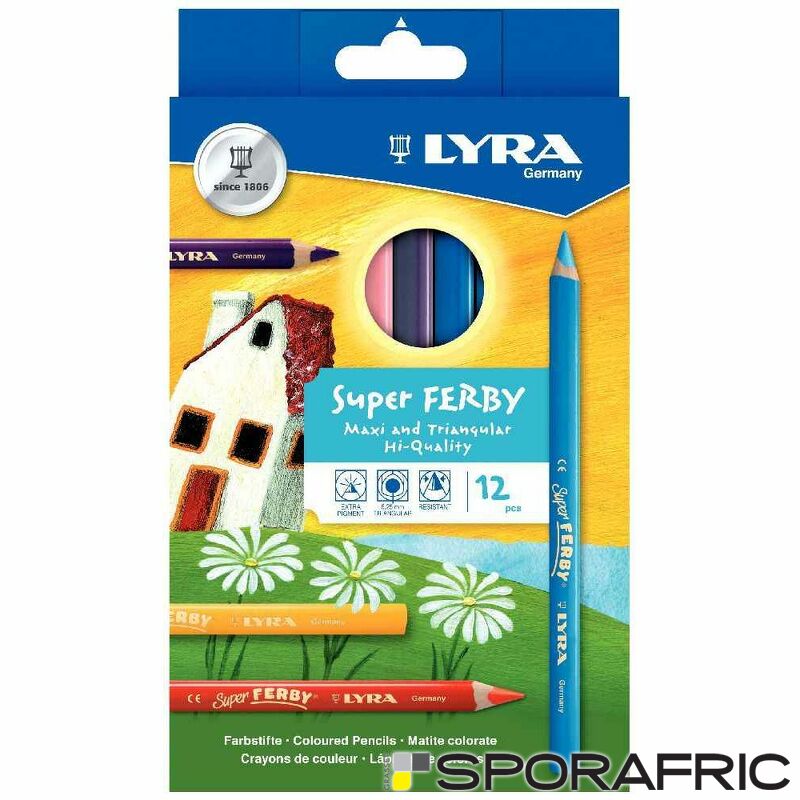 Etui de 12 crayon de couleur triangulaire Super Ferby, mini diamètre 6.25mm, coloris assortis.<br />Crayon de couleur de 17.5cm de long, à mine fortement pigmentée de diamètre 6.25mm.<br />Crayon diamètre 10mm corps vernis