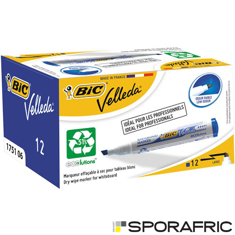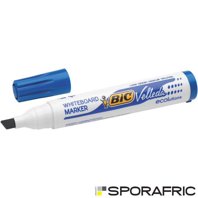 Ces marqueurs de tablettes BIC® Velleda® sont dotés d’encres à base de cétone pour des couleurs vives et vives. Le marqueur est très facile à essuyer, ce qui rend ces marqueurs particulièrement adaptés à une utilisation quotidienne à la maison, au bureau ou en classe.<br /><br />Le capot est ventilé et a la même couleur que l’encre, ce qui facilite la prise du bon marqueur. Les marqueurs ne contiennent pas de PVC et sont fournis dans un corps en plastique pratique. Ces marqueurs sont fabriqués à partir de 51% de matériaux recyclés, ce qui en fait un choix respectueux de l’environnement.<br /><br />En outre, ils utilisent des encres à faible odeur à base de cétone pour fournir une expérience de frappe plus confortable.<br /><br />Marqueur sans PVC<br /> Encre de cétone pour des couleurs vives et vives<br /> Fabriqué à 51% de matériaux recyclés<br /> Pointe inclinée<br /> Largeur de ligne de 3,7 à 5,5 mm<br /> Très facile à essuyer<br /> Corps en plastique<br /> Capot ventilé de la même couleur que l’encre<br /> Couleurs: Bleu<br /> Boîte de 12 pcs.