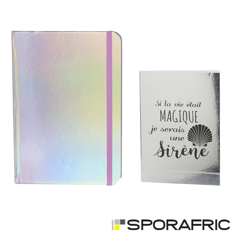 <div id="description" class="col-lg-12 col-md-12 col-sm-12 col-xs-12 no-padding-left "> <div> <div> <div class="tab-pane active"> <div> <div class="description-tab">Lot de 2 petits carnets adorables, l'un à message et l'autre à reflets irisés ! Ces deux carnets sont illustrés sur le thème de la mer et des sirènes. Le petit carnet est souple, de taille 10 x 15 cm il se glissera partout dans vos effets personnels. Quant au plus grand, de format A5, il est composé de 80 pages blanches lignées et joliment agrémentées d’un coquillage au sommet. Sa couverture est rigide, ce qui en fait un excellent support de prise de note dans toutes les situations. Refermable par un élastique rose bonbon, ce carnet conservera précieusement confidences et autres petits souvenirs glissés entre les pages.</div> </div> </div> </div> </div> </div>