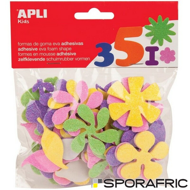 Adhésives. <br />Formes et couleurs différents. <br />Paillettes.<br />En sachet brochable.<br />Fleurs, 48 pièces