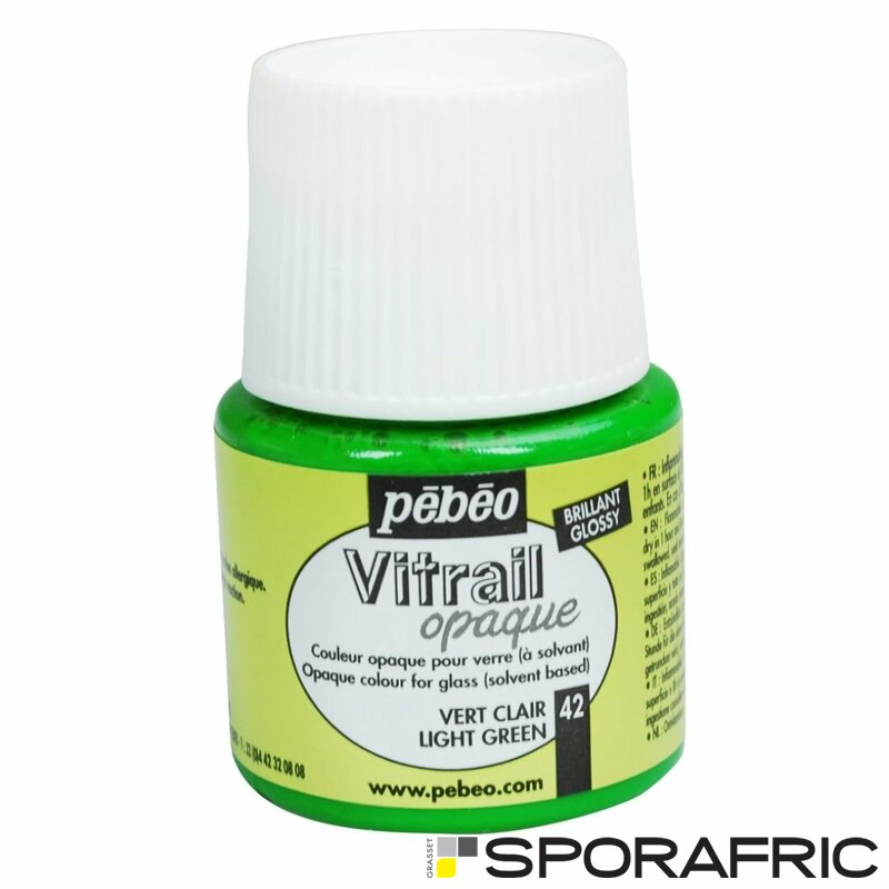 Nous ne savons pas quand ni si cet article sera de retour en stock.<br /><br />Couleurs solvantes à base, denses, opales, intensément lumineuses et très vives/brillantes; Couleur - Vert clair, Bouteille de 45 ml; Légèreté - ** (Très bonne légèreté)<br /> Les couleurs Pebeo Vitrail Opale sont prêtes à utiliser des couleurs avec des outliners cerne relief sur des surfaces transparentes dégraasées comme le verre, l’acétate et le plexiglas; Peut être utilisé avec la technique du bain pour créer des effets marbrés; Les objets peints sont à des fins décoratives seulement et ne doivent pas être utilisés à des fins utilitaires; Sèche en 2 heures pour toucher et 10 heures complètement; Les objets séchés peuvent être lavés légèrement à l’eau froide et résistants au nettoyeur de verre<br /> Pebeo Vitrail Opale couleurs sont également idéales pour être utilisé pour Pebeo Mixed Media Techniques avec Fantasy Moon & Prisme, Pebeo Studio Acryliques, Gedeo & Glazing Résines et feuilles d’effet miroir sur toile, métal, miroir, papier, plastiques, verre, céramique et plus encore; Attendez au moins 7 jours avant d’appliquer la couche de résine sur des couleurs mixtes complètement sèches<br /> Utilisez des brosses, des éponges et des goutte-à-goutte pour appliquer les couleurs ou tout simplement goutte à goutte, éclaboussures et versez-les directement à partir de la bouteille en couches épaisses ou minces. Pour des résultats plus précis, une bouteille d’applicateur avec ou sans pointe Minerva peut être utilisée<br /> Nettoyez toujours soigneusement les brosses avec un esprit blanc ou un esprit minéral inodore ou des nettoyants et des conserveurs General’s Brush, puis rincez à l’eau savonneuse après et avant de les utiliser avec les couleurs pebeo vitrail