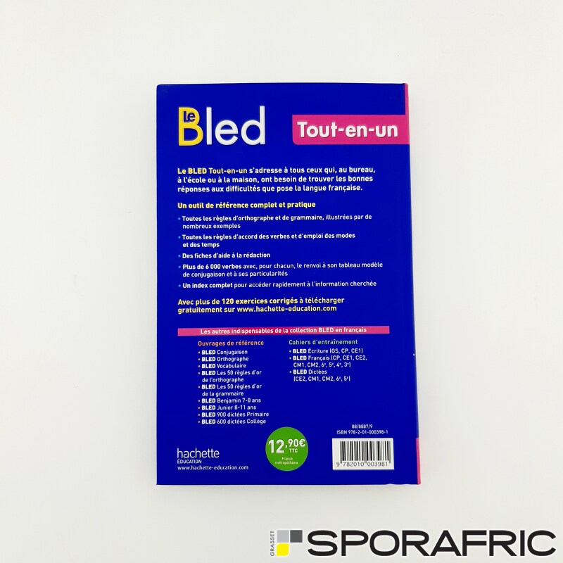 Le Bled Tout-en-un s'adresse à tous ceux qui, au bureau, à l'école ou à la maison, ont besoin de trouver les bonnes réponses aux difficultés que pose la langue française. Un outil de référence complet et pratique Toutes les règles d'orthographe et de grammaire, illustrées par de nombreux exemples. Toutes les règles d'accord des verbes et d'emploi des modes et des temps. Des fiches d'aide à la rédaction.<br />Plus de 6 000 verbes avec, pour chacun, le renvoi à son tableau modèle de conjugaison et à ses particularités. Un index complet pour accéder rapidement à l'information cherchée